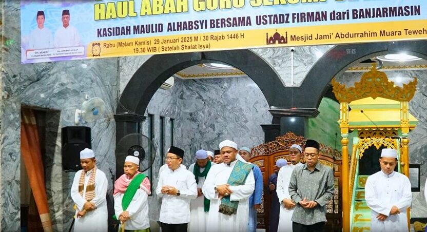 KLIKKALTENG, Muara Teweh – Peringatan Isra’ Mi’raj Nabi Muhammad SAW dan Haul ke-20 Abah Guru Sekumpul berlangsung dengan penuh khidmat di Masjid Jami Abdurrahim Muara Teweh. Acara yang dihadiri oleh berbagai tokoh pemerintahan, ulama, serta masyarakat ini menjadi momen penting untuk mempererat silaturahmi dan meningkatkan keimanan umat Muslim pada Rabu (29/1/2025).