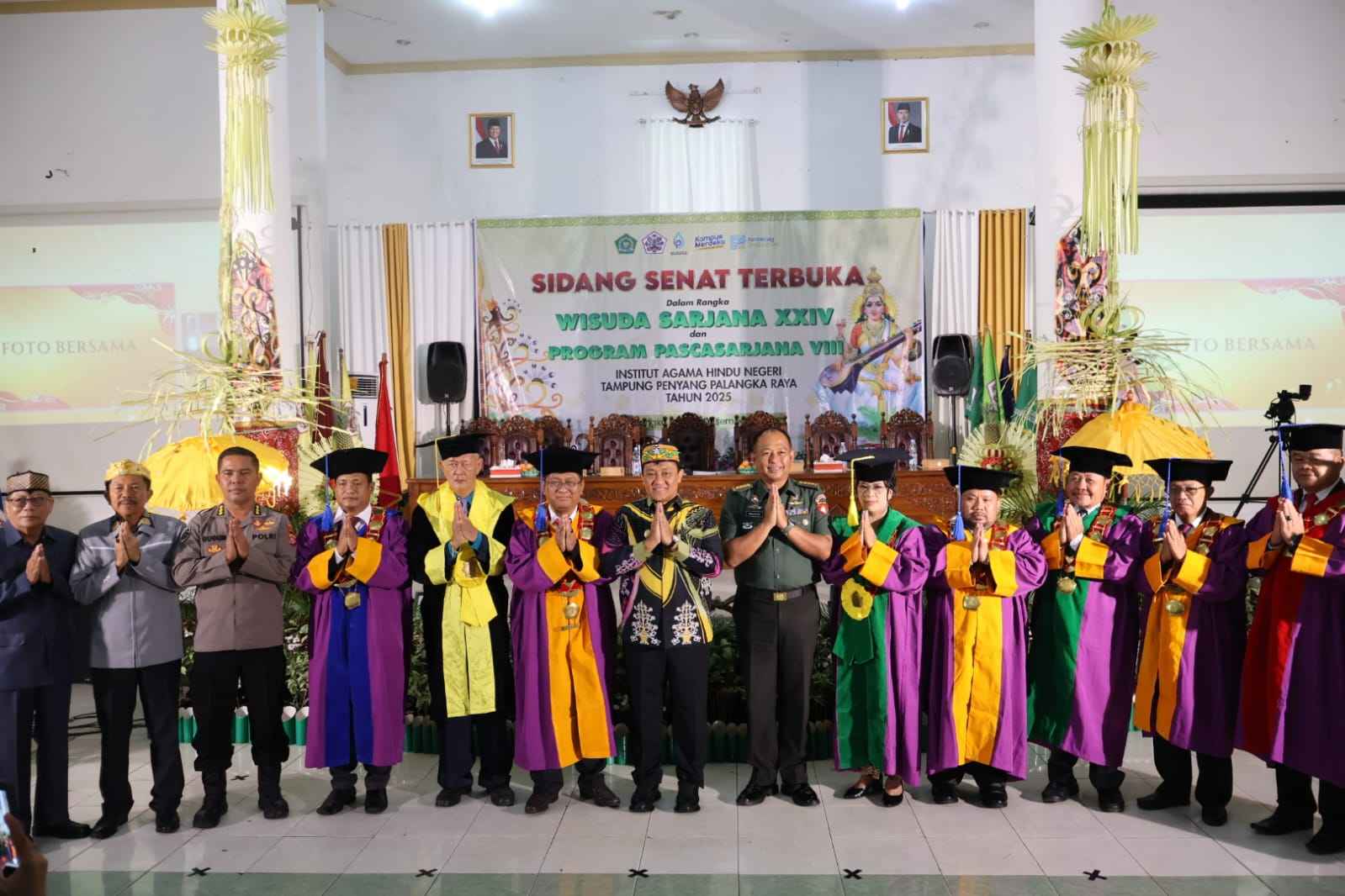 KLIKKALTENG, Palangka Raya – Wakil Gubernur Edy Pratowo menyampaikan ucapan selamat kepada 167 Wisudawan dan Wisudawati yang mengikuti Wisuda Sarjana XXIV dan Pascasarjana VIII Tahun 2025 di Aula Serbaguna IAHN Tampung Penyang Palangka Raya, Kamis (4/12/2025).