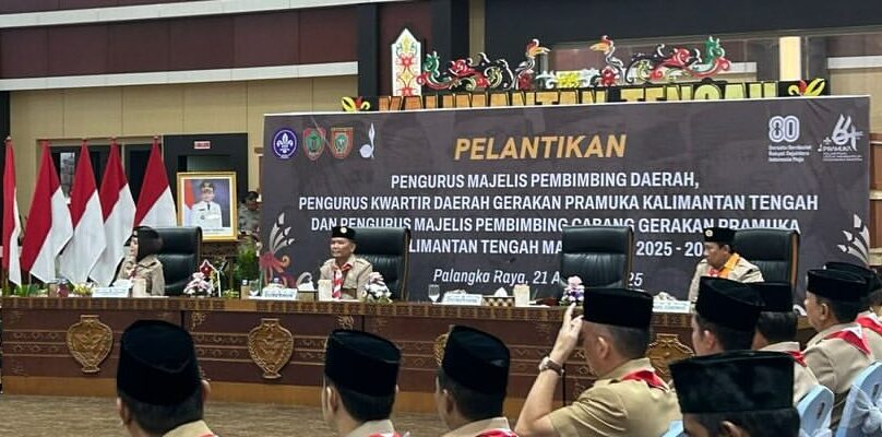 KLIKKALTENG, Palangka Raya – Kwartir Nasional (Kwarnas) Gerakan Pramuka secara resmi melantik pengurus Gerakan Pramuka Kalimantan Tengah masa bakti 2025–2030. Prosesi yang berlangsung di Aula Jayang Tingang, Kantor Gubernur Kalimantan Tengah ini menjadi bagian dari rangkaian Peringatan Hari Pramuka ke-64 Tingkat Provinsi Kalimantan Tengah, Kamis (21/8/2025).