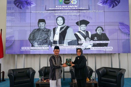 “Terima kasih kepada Prof. Enny yang telah hadir sebagai pemateri dalam kuliah umum ini. Dengan kedatangan ini, semoga bisa mempererat kerja sama antara UIN Surakarta dengan MK. Selain itu, kegiatan ini pasti akan berdampak karena MK memiliki kewenangan luar biasa di masyarakat. Oleh karena itu, mahasiswa yang hadir di sini tolong perhatikan materinya dengan baik dan seksama,” ujarnya.