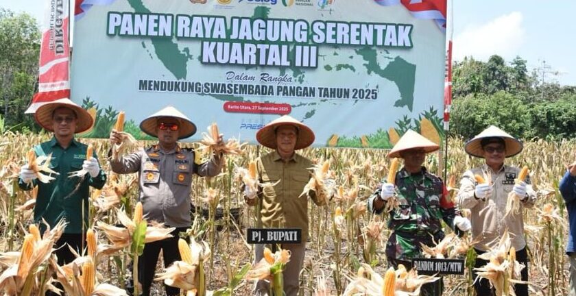 KLIKKALTENG, Muara Teweh – Pemerintah Kabupaten Barito Utara (Pemkab Barut) terus memperkuat komitmennya dalam mendukung program nasional swasembada pangan dengan turut serta dalam Panen Raya Jagung Serentak Kuartal III yang dilaksanakan di Desa Batu Raya I, Kecamatan Gunung Timang, Sabtu (27/09/2025).