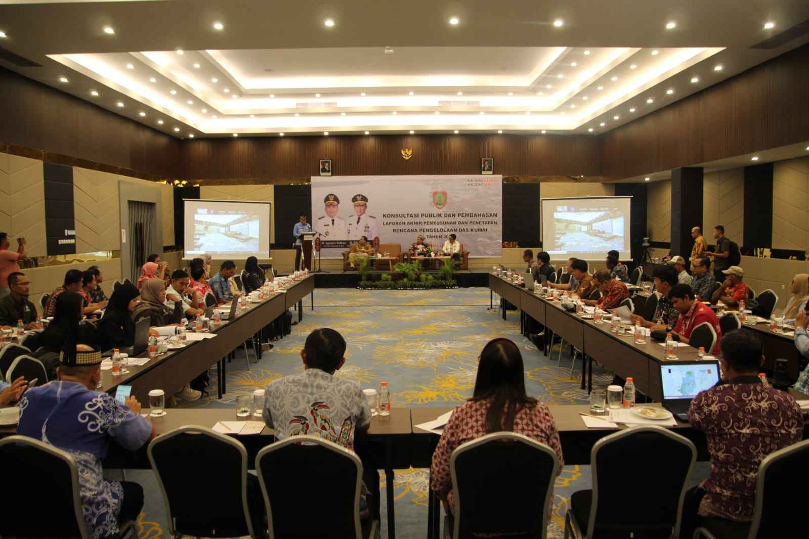 Dalam sambutannya mewakili Plt. Sekda, Yuas Elko menyampaikan apresiasi atas terselenggaranya kegiatan ini yang menjadi bagian penting dari proses penyusunan Dokumen Rencana Pengelolaan DAS Kumai. Ia menegaskan bahwa konsultasi publik dan pembahasan laporan akhir tersebut diharapkan dapat menghasilkan dokumen perencanaan yang terstruktur, terukur, dan akuntabel.