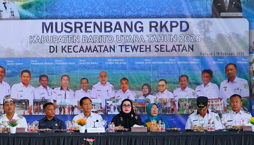 KLIKKALTENG, Muara Teweh – Memasuki hari ke tiga agenda kegiatan Musyawarah Perencanaan Pembangunan (Musrenbang) Rencana Kerja Pemerintah Daerah (RKPD) Tahun 2026 Tingkat Kecamatan, Penjabat Bupati Barito Utara, Drs Muhlis beserta jajaran, hadir dan membuka secara resmi musrenbang RKPD 2026 kecamatan Teweh Selatan, sekaligus meresmikan Gedung Serba Guna dan Rumah Singgah kecamatan Teweh Selatan pada Rabu (19/2/2025).